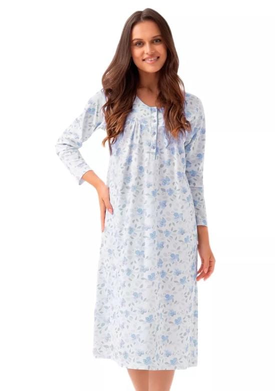 Dámská noční košile 338/53 značky LUNA přináší spojení elegance a pohodlí, které oceníte při každém večeru i ráno. Díky volnému střihu sahajícímu ke kotníkům a jemnému květinovému vzoru v pastelových tónech působí velmi žensky a svěže. Měkký materiál z čisté bavlny je příjemný na dotek, lehký a prodyšný, což zajišťuje maximální komfort během spánku i domácího odpočinku. Kulatý výstřih s praktickým zapínáním na knoflíky usnadňuje oblékání a dodává noční košili decentní vzhled, který si zamilujete i v chla…