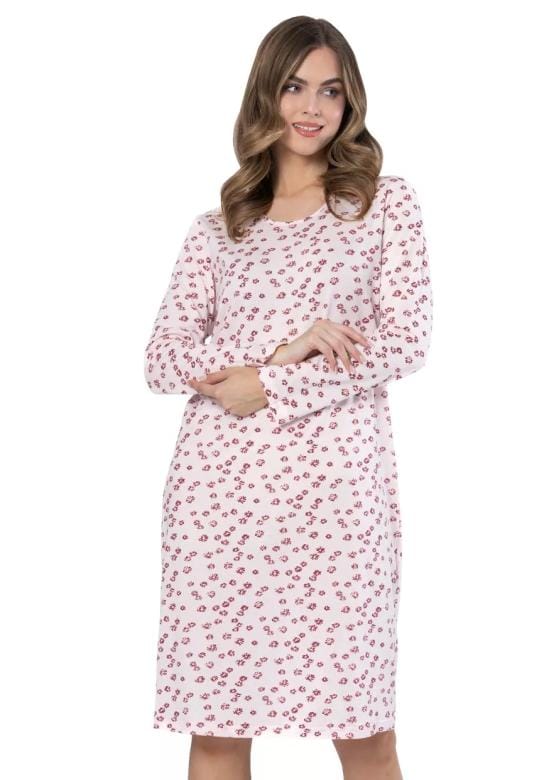 Dámská noční košile Gelazja 1625 značky LEVEZA přináší pocit lehkosti a pohodlí do každého večera. Její volný střih s délkou ke kolenům jemně obepíná postavu, aniž by omezoval pohyb, což oceníte při odpočinku i spánku. Měkký materiál ze 100% bavlny je prodyšný a příjemný na dotek – ideální pro citlivou pokožku i celonoční komfort. Jemná růžová barva v kombinaci s drobným květinovým vzorem působí žensky a decentně, zatímco kulatý výstřih usnadňuje oblékání.