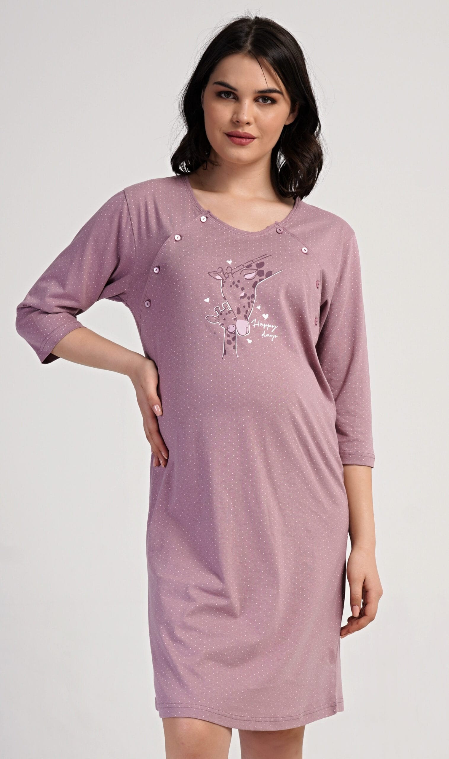 Pohodlná dámská mateřská noční košile s tříčtvrtečním rukávem Emily.