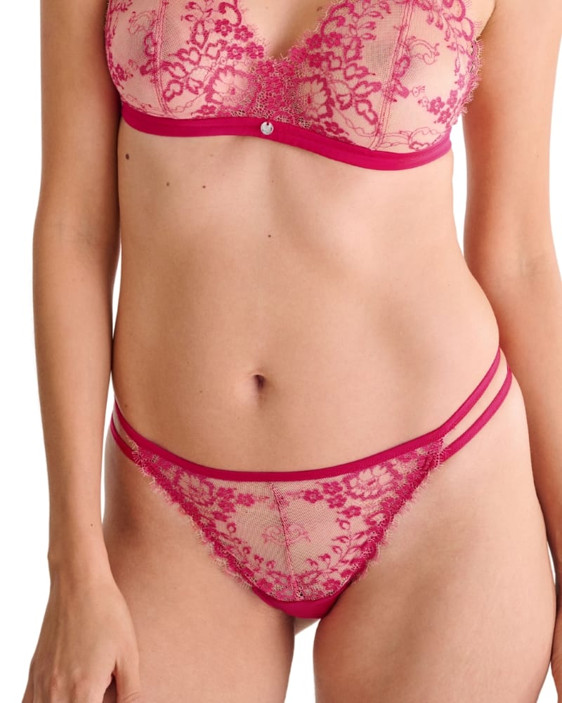 Luxusní dámské brazilské kalhotky vpředu s nádhernou krajkou, po bocích ozdobná paspulka a pohodlný zadní díl.