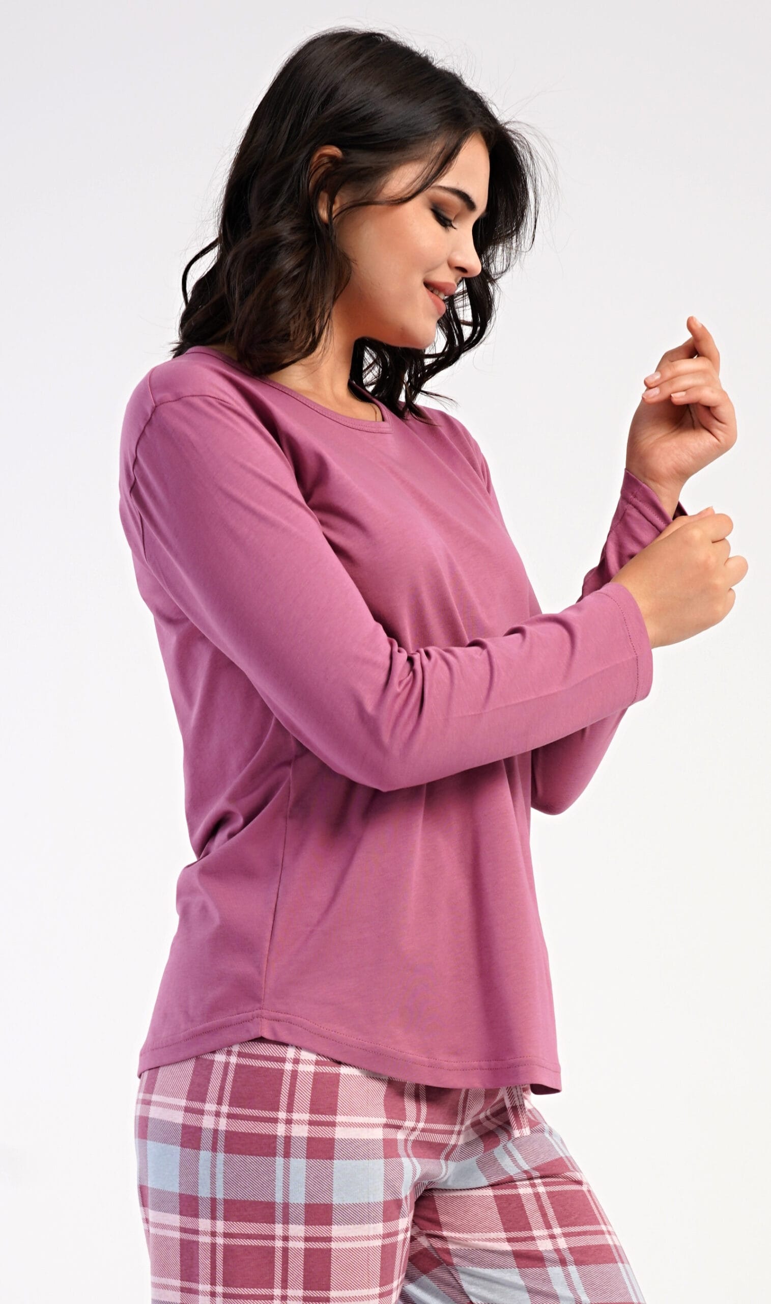Dámské pyžamo se skládá z trika s dlouhým rukávem a dlouhých kalhot.