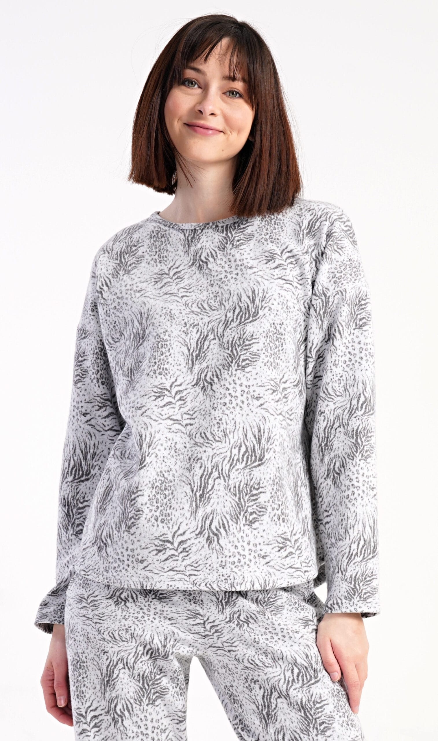 Pohodlné dámské pyžamo s dlouhým rukávem Sofia s abstraktním motivem.