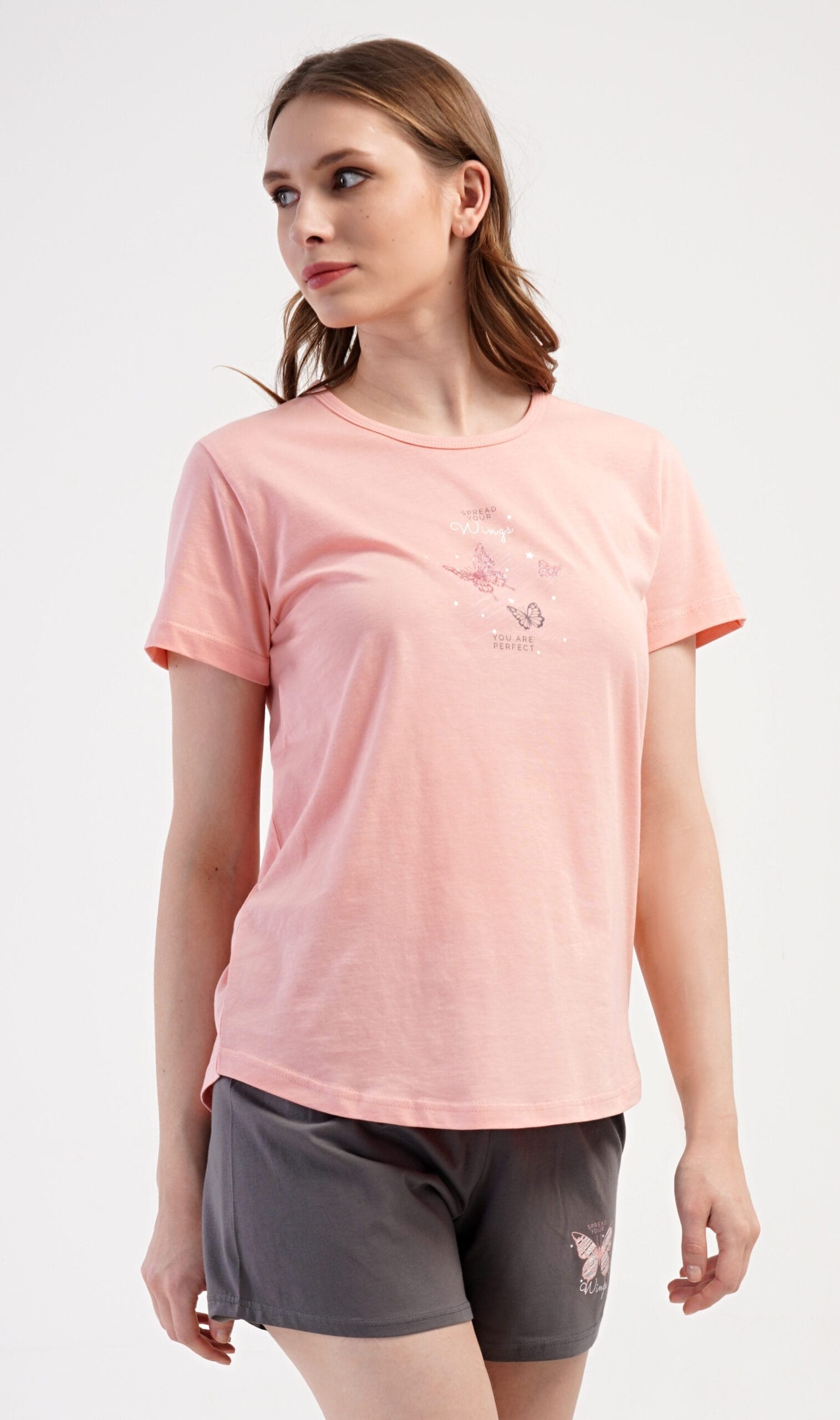 Elegantní dámské šortkové pyžamo s krátkým rukávem Motýlci.