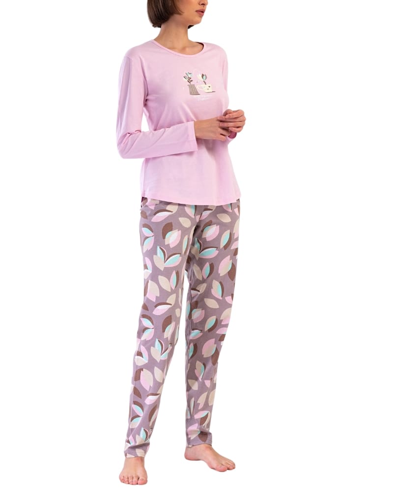 Kvalitní bavlněné dámské dlouhé pyžamo v decentním motivu.