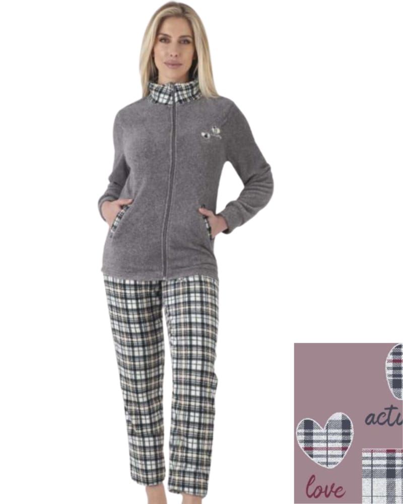 Měkké, jemné a hřejivé pyžámko je z velmi příjemného materiálu. Vrchní díl má stojáček a zapínání na zip.