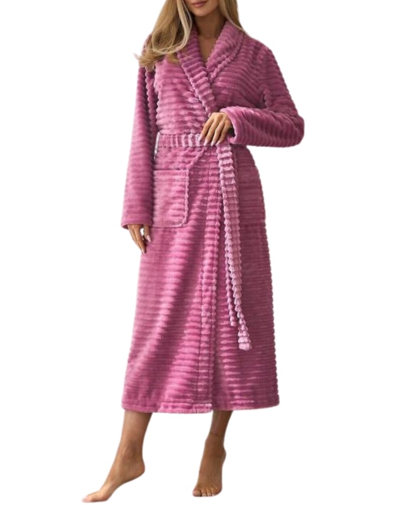 dámský župan s vyráženým vzorem značky LandL. Župan je dlouhý pod kolena a na bocích má hluboké kapsy. Župan lze okolo pasu uvázat páskem. Župan je velmi příjemný na dotek.