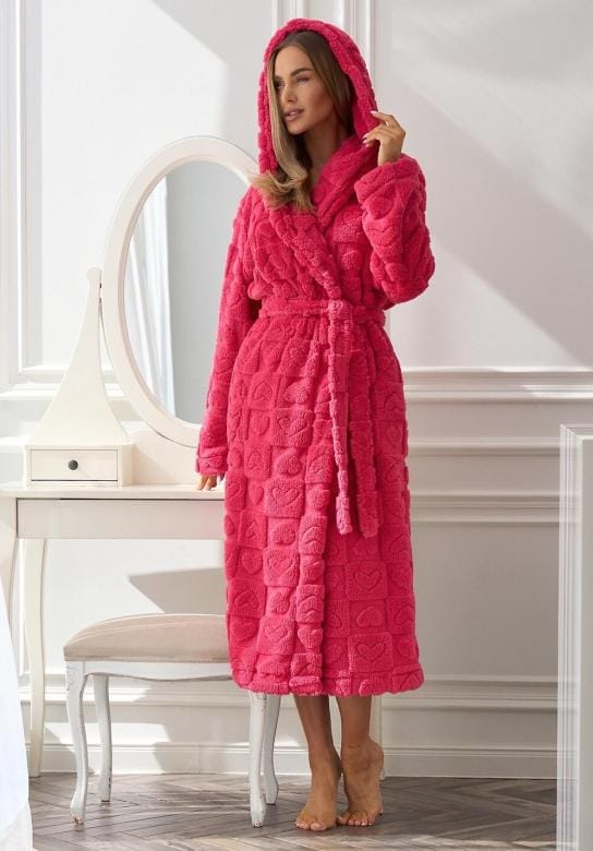 dámský župan s vyráženým vzorem a kapucí značky LandL. Župan je dlouhý pod kolena a na bocích jsou zapuštěné kapsy. Župan lze okolo pasu uvázat páskem. Župan je velmi příjemný na dotek. Materiálové složení: 100% polyester