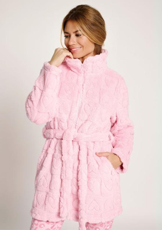dámský župan Muydemi v jemně růžové barvě je vyroben z měkkého a hřejivého materiálu, který poskytuje maximální komfort při domácím odpočinku. Župan má praktický zip po celé délce, pásek v pase pro snadné zavazování a dvě kapsy. Zajímavým detailem je plastický vzor srdíček, který dodává županu romantický vzhled. Ideální volba na chladnější dny i večerní pohodu.