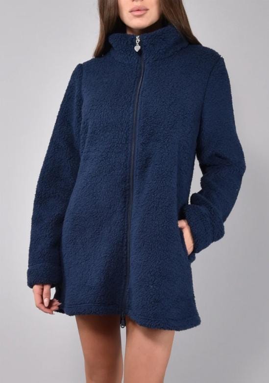 Tento dámský župan Siélei v elegantní tmavě modré barvě je ideální volbou pro příjemné domácí pohodlí. Je vyrobený z měkkého a hřejivého „teddy“ materiálu, který připomíná jemný beránek a spolehlivě zahřeje i v chladnějších dnech. Župan má moderní střih se zapínáním na zip po celé délce a praktické postranní kapsy. Vysoký stojáček chrání před chladem a dodává celému modelu stylový vzhled. Díky delší délce skvěle obepíná postavu a poskytuje maximální komfort. Perfektní volba pro ty, kdo mají rádi hebké, m…