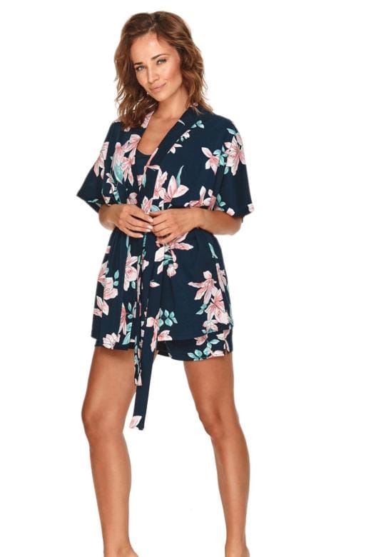 Stylový dámský župan 2683 Marija Taro – modrá barva se vzorem.