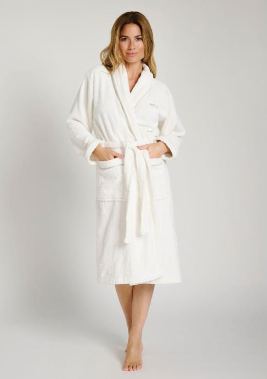 Unisex župan Muydemi v elegantní bílé barvě je vyroben ze 100% bavlny, která je měkká, savá a příjemná na dotek. Skvěle poslouží po koupeli, do sauny i na domácí relax. Župan má klasický střih se šálovým límcem, dvě praktické kapsy a pásek v pase pro snadné zavazování. Výrazným detailem je decentní béžové lemování, které dodává županu elegantní vzhled. Díky univerzálnímu designu je vhodný pro ženy i muže a poskytuje maximální komfort v každém okamžiku.